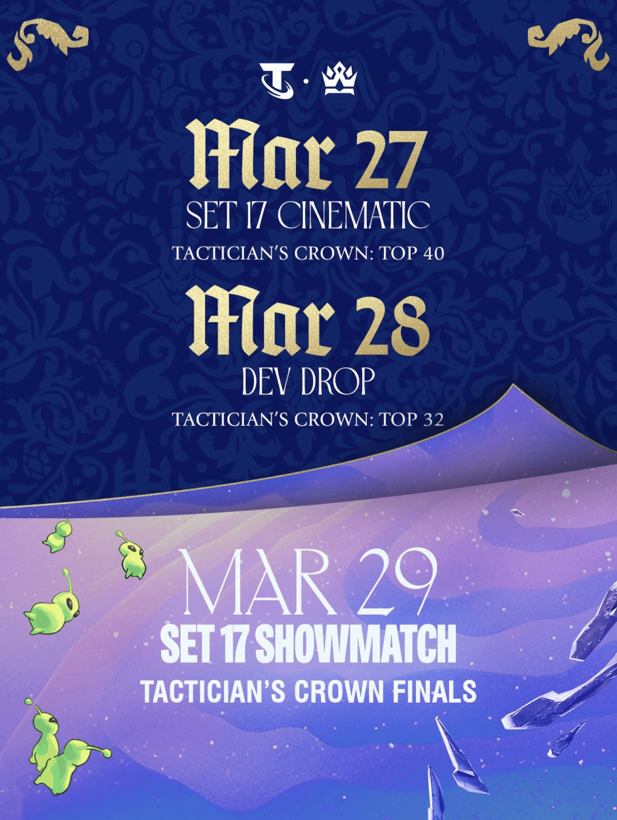 At the time, the Teamfight Tactics team also went through a high level rebrand, specifically regarding their Esports visual identity. We were the first Set to integrate our individual identity with the Esports one, and I led creative decision making around the language we chose to combine for events such as the Tactician's Crown.