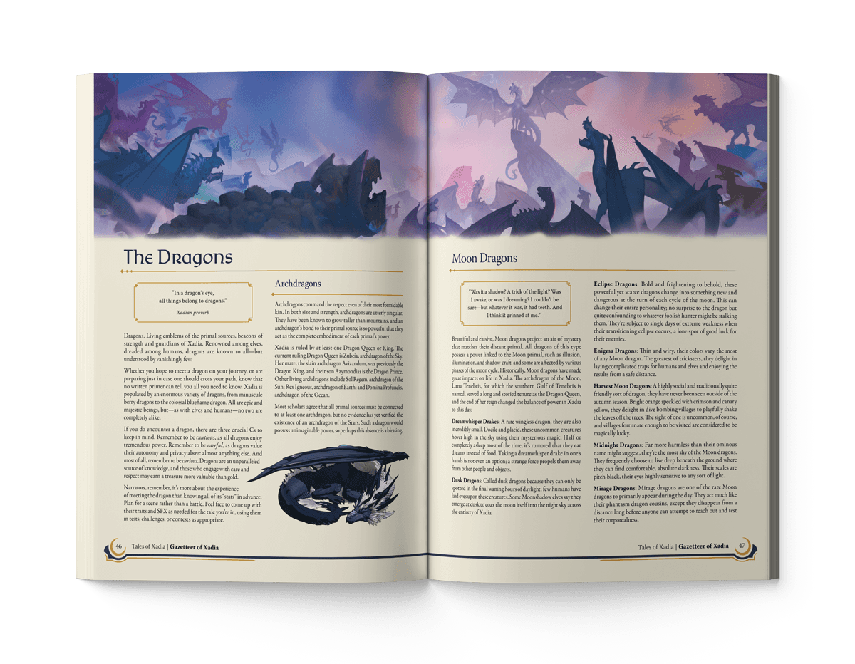 As Franchise Lead at Wonderstorm, I lead the development of Tales of Xadia: The Dragon Prince Roleplaying Game, a tabletop RPG set in the world of The Dragon Prince that went on to win a 2021 ENNIE Awards. In collaboration with partners including Fandom, Dire Wolf Digital, Cortex Prime, and Genuine Entertainment, I helped guide the project from early development through production, marketing, and retail launch.